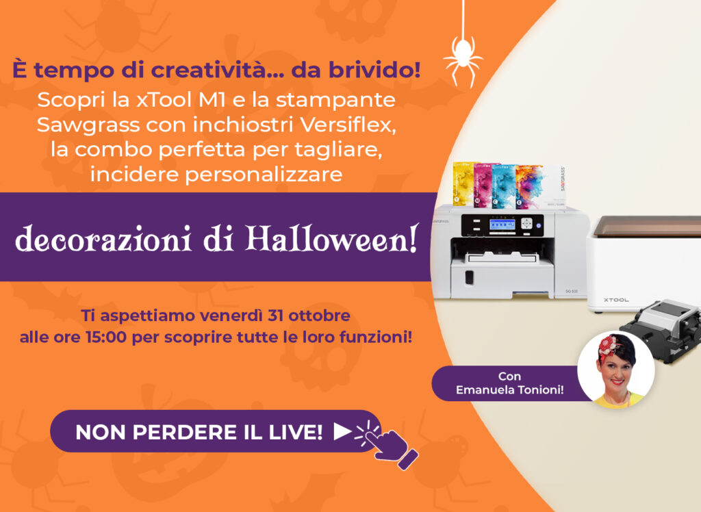 Ti aspettiamo venerd矛 31 ottobre alle 15 per creare con la xTool M1, la macchina 2-in-1 per taglio laser e plotter da taglio, e la stampante Versiflex, ideali per creare decorazioni a tema Halloween da paura! 馃懟