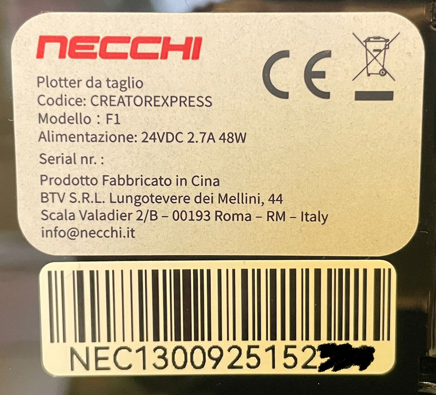 Congratulazioni per l’acquisto del tuo nuovo plotter da taglio Necchi!!!
